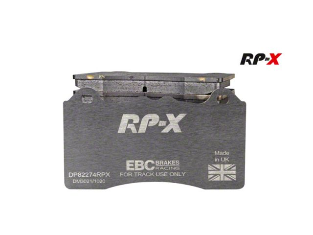 RP-X Racing Front Brake Pads by EBC. EBC Racings RP-X compound is an ultra-high performance track and race pad designed for performance vehicles driven hard on track and for dedicated race cars. RP-X has a very stable friction coefficient of 0.55 mu up to and beyond 850 C, making it an excellent performer for even the most demanding vehicle applications.