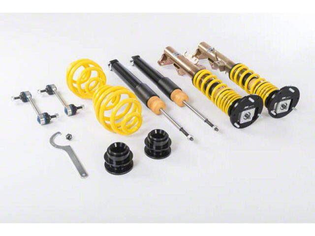 Looking for maximum performance for your car? Our adjustable ST XTA Coilover kits are the upgrade you need. All ST XTA systems are delivered with a linear race springs system, adjustable dampers, and aluminum unibal camber adjustable top mounts. ST XTA Coilover kits deliver precise adjustment to your ride height so you control the look of your car. We manufacture the adjustable spring perch made of durable and friction-optimized polyamide composite material with a stainless steel insert. Thanks to the composite material corrosion is prevented between the strut and perch ensuring long lasting height adjustability while the stainless steel insert provides strength and confidence! ST XTA Coilovers come preset to our factory recommended damper settings, the same configuration we test them at on our KW shock dynos before they go into your box. The 16 distinct clicks of adjustable rebound damping allow you to refine the driving dynamics with a simple turn of the adjustment knob. Each kit includes a detailed damper setup manual making it easy to reset to our recommended setting at any time. Whether your preference is comfort, performance, or something in between; ST XTA puts the finer details of the driving dynamics in your hands. The top mounts included with our ST XTA Coilover kits allow you to adjust the camber at the front axle to dial in aggressive wheel and tire fitment. They also allow you to maximize the tire's contact patch for driving in fast corners and any other driving scenario that demands maximum grip. Galvanized zinc coated steel struts optimize corrosion protection for long lasting use. We add a dust protection system to prevent unwanted dirt and particulate from coming in contact with the hardened chrome piston rod or getting into the valve packs. We reinforce the system with a multi-layered pressure resistant sealing package, mono block guide system and a low friction piston band which works inside the pressure resistant internal damper housing.