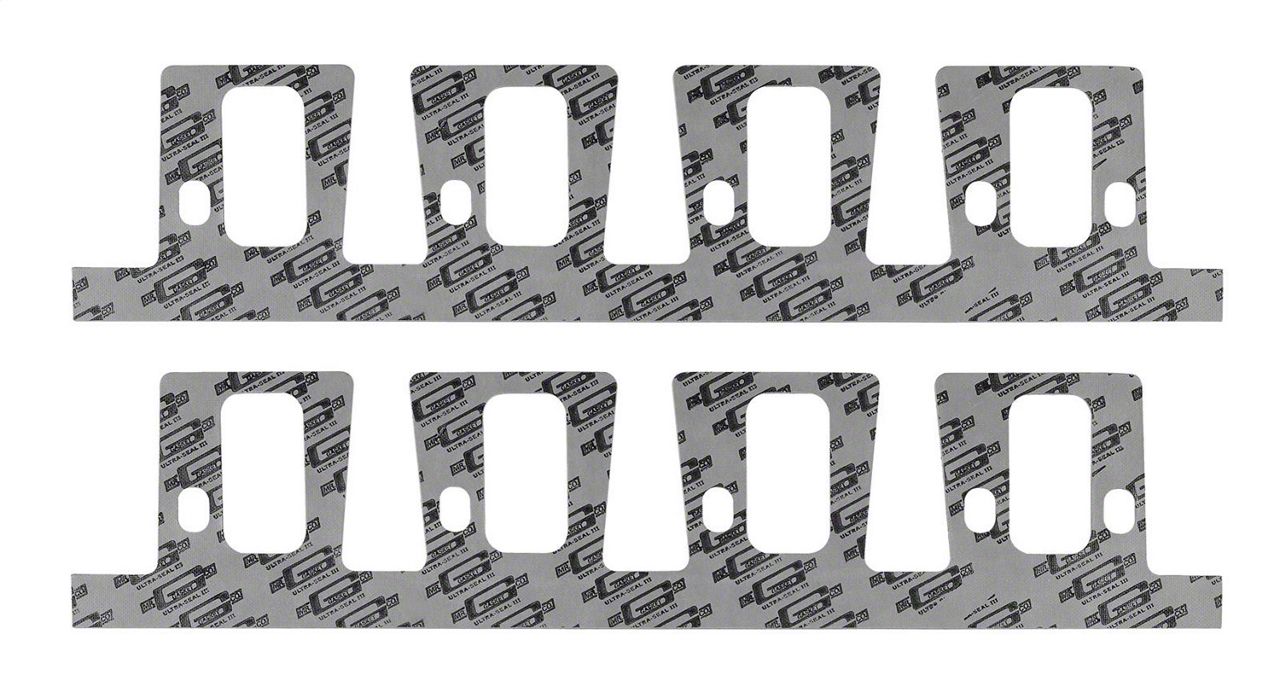 Mr. Gasket Super Ultra-Seal III Performance Intake Gaskets are made from a high-density material that combines a custom-engineered copolymer binder system which holds fibers and fillers together, reinforced with 100 percent synthetic fiber and high-temperature fillers, to produce a uniform, high-strength composite sealing material. This material delivers excellent sealing properties for oil, fuels and coolant at low flange pressure (clamp force), along with high crush resistance for continuous use to 350 degrees Fahrenheit and intermittent exposure to 650 degrees Fahrenheit. Made from high-density, high-tensile strength and high-temperature gasket material. Delivers excellent sealing properties for oil, fuel and coolant. Seals using low flange pressure (clamp force). Can be modified (trimmed) easily to fit custom applications. Requires no gasket sealer for installation. Releases easily (no scrapping required) will not stick to mating surfaces when disassembling engine.