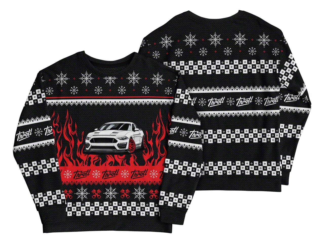 Bring retro muscle-car heat to sweater weather with the throtl Flame Mustang Holiday Crewneck Sweatshirt, a cozy, cotton-feel layer with a soft brushed-fleece interior. The bold all-over design brings festive energy to chilly nights, from garage hangs to holiday meet-ups.