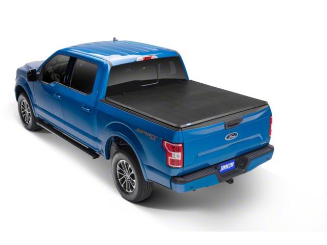 Tonno Pro's TonnoFold soft tri-folding truck bed cover is one of the easiest to use tonneau covers with exceptional durability and great looks. Its tear-resistant, double-sided vinyl top is long lasting and can handle heavy winds, light rain and snow. Under the notably strong vinyl is a powder-coated aluminum frame for an added level of protection from everyday wear and tear. This tri-folding cover keeps a tight fit to the truck bed, does not sag and has limited flutter when vehicle hits high speed. TonnoFold is delivered completely assembled making install a breeze -- no drilling necessary. Simply square up the cover to your truck bed and use its easy-to-use clamping system to lock it securely in place. Hauling large cargo? Completely remove the cover in minutes to meet your unique carrying needs.