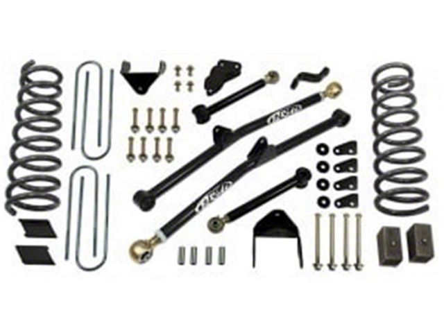 Tuff Country EZ-Ride Suspension's Dodge Ram "Long Arm" Lift Kits and Upgrade Kit are your answer! By replacing the factory control arms with the longer arms, this creates less of an angle on the control arms which results in a much softer ride, dramatic handling improvements (reduces bump steer significantly) and suspension articulation. Both upper and lower arms use greaseable, re-buildable flex joints which will reduce or eliminate the front suspension from binding.