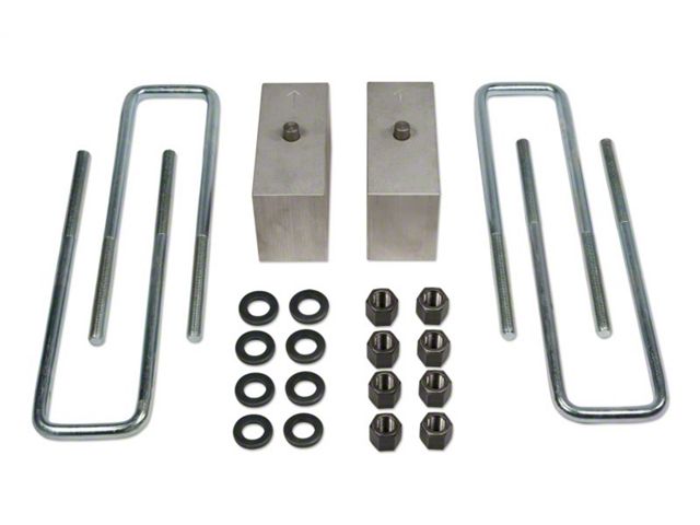 Tuff Country's block and u-bolts kits are an economical solution to raising the rear end of many trucks and SUVs. Lift blocks are inserted between the factory axle and leaf spring to lift the rear end. Each kit includes lift blocks and extended zinc plated u-bolts, custom fit for the application.