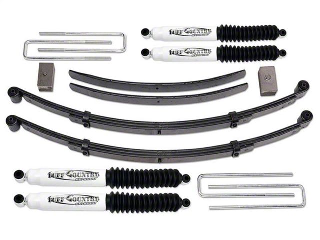 Gain additional tire clearance for 33 tires and replace your worn front springs with the superior ride of the Tuff Country "EZ-Ride" Dodge truck lift kit. Each spring is tapered, snub rolled and pre-set for the most comfortable ride available in a lifted positive arch leaf spring. Rear lift blocks and add-a-leafs lift the rear of the Dodge truck. Stock length shock absorbers must be replaced with extended shocks for lift kits.