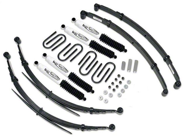 Tuff Country's straight axle suspension lift kits feature the exclusive EZ-Ride leaf springs. All springs are tapered, snub rolled and pre-set for the most comfortable ride available in a lifted positive arch leaf spring. To reduce squeaking and improve ride characteristics teflon inserts are also used between each leaf.