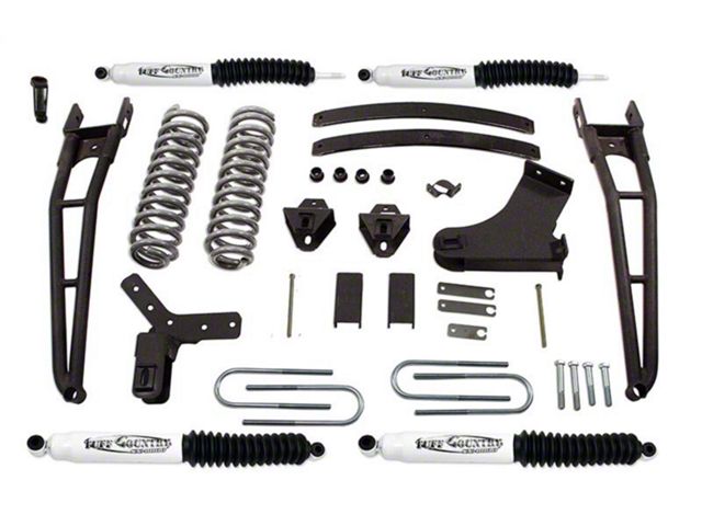 This Performance lift kit for the Ford Explorer includes extended radius arms for improved articulation & tire clearance. EZ-Ride coil springs lift the front end, add-a-leafs are used in the rear. Alignment is maintained using radius arm drop brackets, axle pivot brackets and sway bar drop brackets.