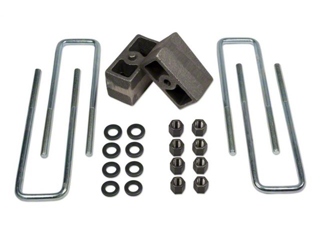 Tuff Country's block and u-bolts kits are an economical solution to raising the rear end of many trucks and SUVs. Lift blocks are inserted between the factory axle and leaf spring to lift the rear end. Each kit includes lift blocks and extended zinc plated u-bolts, custom fit for the application.