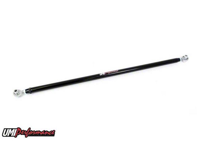Our tubular on-car double adjustable panhard bar replaces the flimsy stock stamped panhard bar while adding increased strength and rear end adjustment. This is a must for rear end centering after vehicle lowering, as well as clearance for running larger tires. If you are looking for the maximal performance from your vehicle you can not go wrong with this setup. Our double adjustable panhard bar features 100% TIG welded fabrication for the utmost in strength and QA1 Teflon lined rod ends. This double adjustable panhard bar features left and right hand threads for quick and easy on-car adjustments by simply loosening (2) jam nuts; does not require removal of panhard bar from vehicle. The spherical rod end set up eliminates rear end bind, which is an excellent improvement for your street, autocross or drag race applications. As well as easy adjustments, our heavy duty panhard bar also increases rear stability, controls side movement and body flex. This item is built using only the best American products on the market today.
