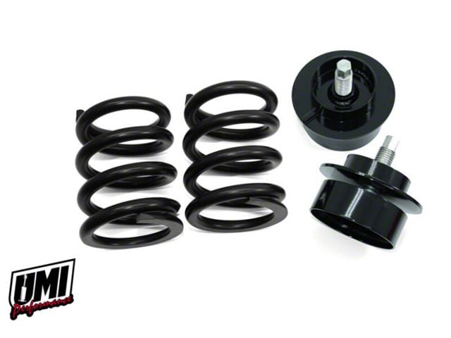 UMI's competition 3rd Gen F-Body front weight jack system replaces the factory spring with a tough, adjustable weight jack bucket and a custom wound ultra-premium performance spring. This kit gives up to 2-½" lowering from factory height. The adjustment bucket features an extra thick ¼" base to resist bending under the force of competition. Ultra-smooth ride height adjustment with our acme bolt and industry exclusive thrust bearing system means easier ride height changes at the track. Bending potential is reduced by the thrust bearing system which also helps spread the load over a large surface area. Custom designed 1050 lb/in springs offer a firm ride suitable for auto-x, road race and back road corner carving as well as spirited daily driving (if you don't mind a firm ride). The 2065-3 kit gives the ride height adjustability of a coilover while still allowing maximum tire clearance around the strut. Works great with the UMI Afco strut, Viking strut or Koni strut. This kit is available in UMI gloss black or red powder coat. 100% manufactured, tested and race proven in the USA.