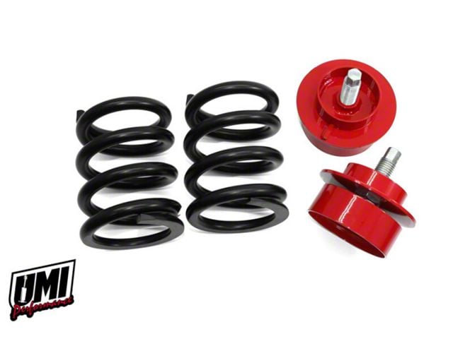 UMI's 3rd Gen F-Body front weight jack system replaces the factory spring with a tough, adjustable weight jack bucket and a custom wound ultra-premium performance spring. This kit gives up to 2-½" lowering from factory height. The adjustment bucket features an extra thick ¼" base to resist bending under the force of competition. Ultra-smooth ride height adjustment with our acme bolt and industry exclusive thrust bearing system means easier ride height changes at the track. Bending potential is reduced by the thrust bearing system which also helps spread the load over a large surface area. Custom designed 850 lb/in springs offer a crisp ride suitable for back road corner carving as well as daily driving. The 2065 kit gives the ride height adjustability of a coilover while still allowing maximum tire clearance around the strut. Works great with the UMI Afco strut, Viking strut or Koni strut. This kit is available in UMI gloss black or red powder coat. 100% manufactured, tested and race proven in the USA.