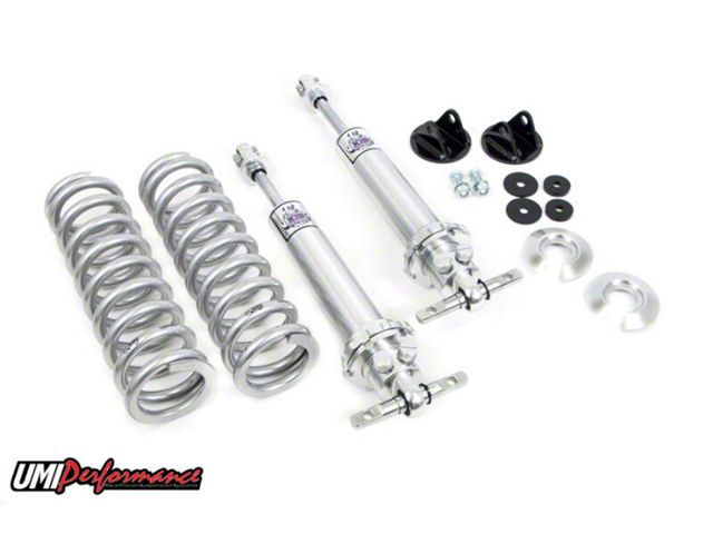 UMI's F-Body front coilover kit permits installation of a true 2-1/2" racing coilover spring and shock into your 1993-2002 GM F-Body. Factory style lower t-bar fits factory GM, UMI and most other brands of lower arms intended for stock t-bar. The factory GM rubber shock mount tends to rust out and allow unwanted movement while being costly to replace. The UMI coilover kit replaces that unit with a bolt-in, race proven double shear upper mount which drains nicely and is powder coated for durability. The UMI designed upper brackets capture a Viking double adjustable coilover specific shock and a 300, 350, 450 and 550 lb-in spring. We recommend 550 for auto-x and road racing, 450 for hot street and corner carving, 350 for general use and 300 for drag specific use. Included Viking shocks use upper and lower bearings eliminating polyurethane and rubber for crisp response and great reliability. This kit is generally used for 1-3" lowering from factory location and does not make any permanent changes to the upper spring mount or chassis. All UMI products are manufactured tested and raced out of Philipsburg, PA and always use US materials.