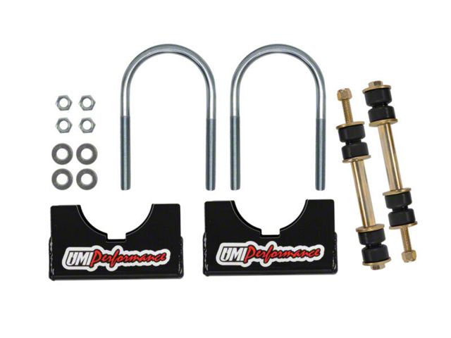 If you have an aftermarket rear end and no way to install a rear sway, this kit is the solution. This kit includes everything needed to install a factory or aftermarket sway bar to your new rear end. Supplied with this kit is new bolt on CNC machined bushings mounts, heavy duty zinc plated chromoly u-bolts and longer end links. This kit places the sway bar below the larger center section on aftermarket rear ends and provides proper clearance. The supplied longer end links provide the proper geometry of the rear sway in its new mounting location. Note: This kit will also work on adapting a rear sway bar to vehicles that were not supplied with a sway bar from the factory.
