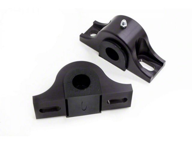 These heavy duty sway bar mounts from UMI are CNC machined from beautiful T6-6061 billet aluminum and are nicely sanded then clear anodized to prevent corrosion. Large sway bars place a lot of stress on their mounting points and mounting brackets causing them to flex, bend or even break. These heavy duty aluminum mounts are a new replacement for the stamped steel mounts supplied with most aftermarket sway bars. The UMI brackets are supplied with new greaseable polyurethane bushings and grease fittings. Not only do these brackets reduce flex they offer a great touch to the underneath of your vehicle. Price is per set, one set needed for one sway bar. Sway bar mounts are designed for 0.875" diameter rear sway bars.