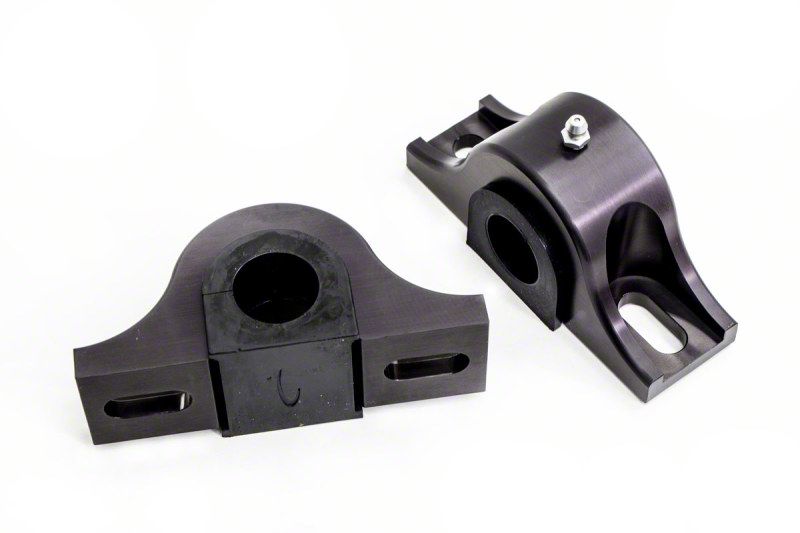 These heavy duty sway bar mounts from UMI are CNC machined from beautiful T6-6061 billet aluminum and are nicely sanded then finished with clear anodize to prevent corrosion. Large sway bars place a lot of stress on their mounting points and mounting brackets causing them to flex, bend or even break. These heavy duty aluminum mounts are a new replacement for the stamped steel mounts supplied with most aftermarket sway bars. The UMI brackets are supplied with new greaseable polyurethane bushings and grease fittings. Not only do these brackets reduce flex they offer a great touch to the underneath of your vehicle. Price is per set, one set needed for one sway bar. Sway bar mounts are designed for 1.000" diameter rear sway bars.