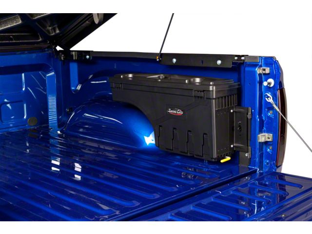 SwingCase by UnderCover is the most innovative and versatile truck storage box ever made. Built to last from lightweight, high-impact ABS plastic; the tough, weatherproof, SwingCase is custom fitted for your truck. The SwingCase is affordable, too. In fact, you can purchase two SwingCases for less than the price of an old-fashioned truck bed box... and save a lot of space, too. Best of all, the SwingCase provides storage that is always within reach without sacrificing the use of your truck bed. Just simply pull the release lever and your gear swings out to you, no more reaching over or climbing into your truck bed. For work or play, go with SwingCase today.