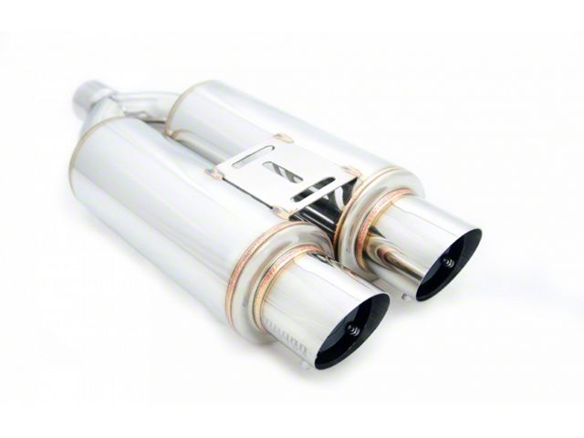 The dual canister, dual 3.5" tips and dual silencers makes this M-DF a very unique muffler. You won't see the dual 3.5" silencers on the streets all the time, making this muffler very special. The M-DF looks and performs well whether it be a race car, a 4 door, or an everyday driven car. This muffler will gain better response on higher RPM, and with silencers on, will reduce the loudness approximately 20-30%.