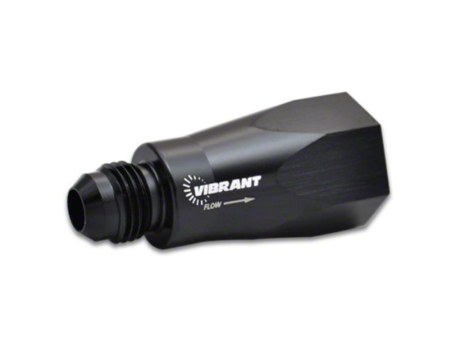 Vibrant Performance Ball Style Inline One Way Check Valves are lightweight and constructed entirely from 6061 Aluminum alloy. Our Ball Style Inline One Way Check Valves are designed to prevent flow back of all varieties of fuel, oil or coolant. Vibrant Check Valves will stand up to the most rigorous operating environments and are capable of handling temperatures ranging from -30deg F to 400deg F and operating pressures up to 300psi. All Vibrant Performance Ball Style Inline One Way Check Valves are available in anodized black only. Cracking pressure is adjustable between 2-5 psi. Use Thread Locker when setting cracking pressure. Flow Direction: Male AN to Female ORB.