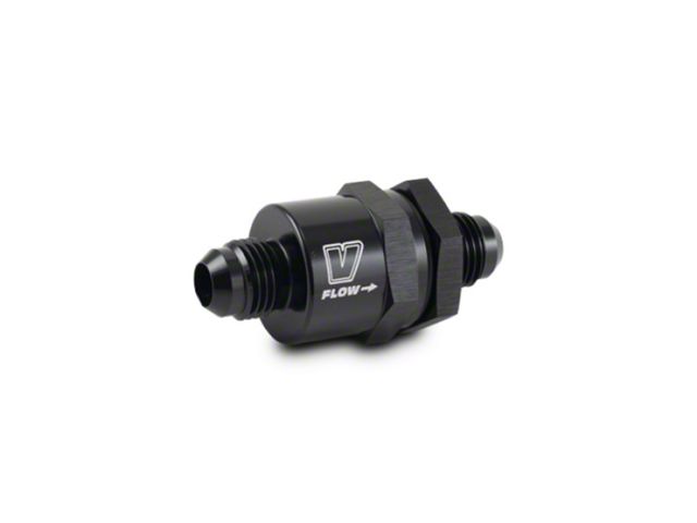 Vibrant Performance Piston Style Check Valves are lightweight and constructed entirely from 6061 Aluminum alloy. Available in sizes ranging from -6 to -16 AN, all Vibrant Performance Piston Style Check Valves are available in anodized black only.