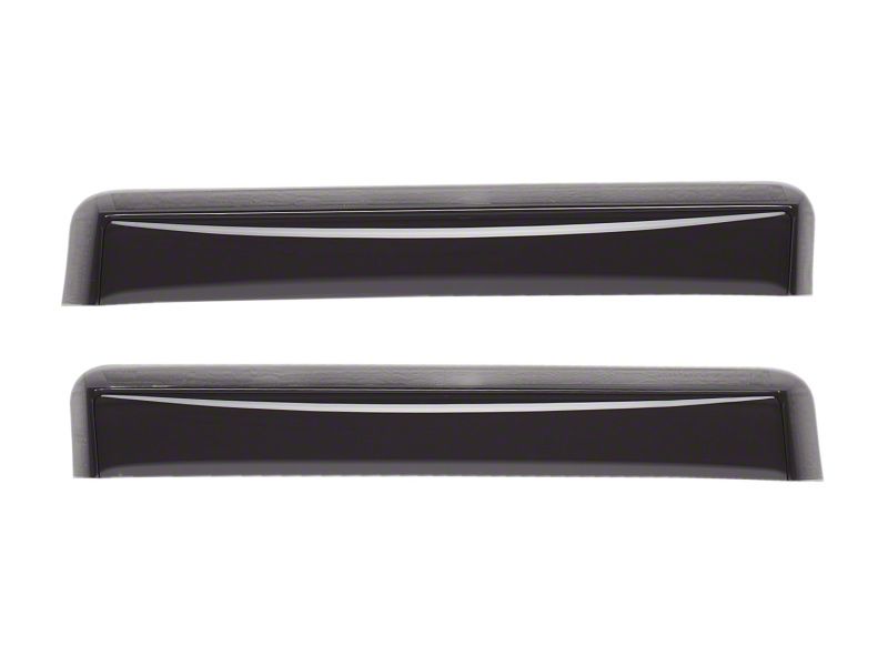 WeatherTech Side Window Deflectors offer you fresh air enjoyment with an original equipment look. They are crafted in Germany from the finest 3mm lightly-tinted acrylic material available. Installation is quick and easy, with no exterior tape needed. WeatherTech Side Window Deflectors are precision-machined to perfectly fit your vehicle. These low profile window deflectors help to reduce wind noise and allow interior heat to escape. Also available in dark tint for most vehicles.