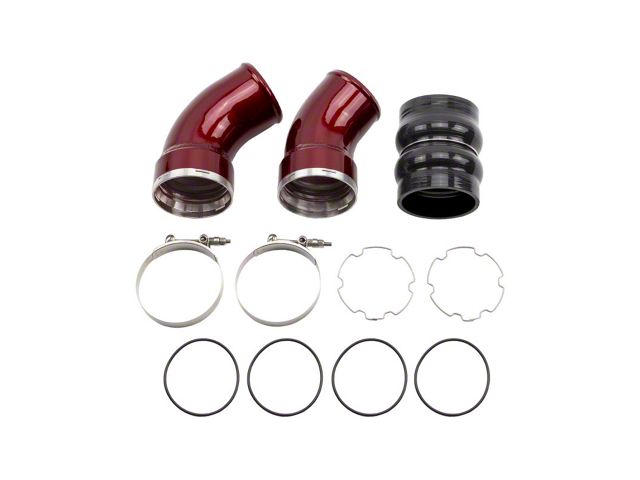 The 3.5" High Flow Passenger (Cold) Side Intercooler Pipe Kit for 2006-2010 LBZ/LMM Duramax replaces the failure prone factory plastic piece with a larger, high flow, 14 ga. aluminum fabricated 3.5" pipe. This part uses CNC machined flanges with double o-ring seals, comes supplied with a new wire clip rings for both slip flanges, and uses an upgraded silicone hump boot with stainless steel t-bolt clamps to withstand higher boost pressures than the factory components to increase reliability and eliminate blown factory boots and horsepower robbing boost leaks. Finished in your choice of custom powder colors. This pipe is compatible with stock trucks requiring no additional modifications, upgrades, or tuning for installation. Improves airflow between the turbo and engine for improved efficiency, throttle response, and turbo spool up. Eliminates weak points in the factory design that can lead to boost leaks or complete failures in hard working and high performance applications. Installs easily with basic hand tools. Pairs best with emissions compliant tuning and drop in turbochargers for optimum performance gains.