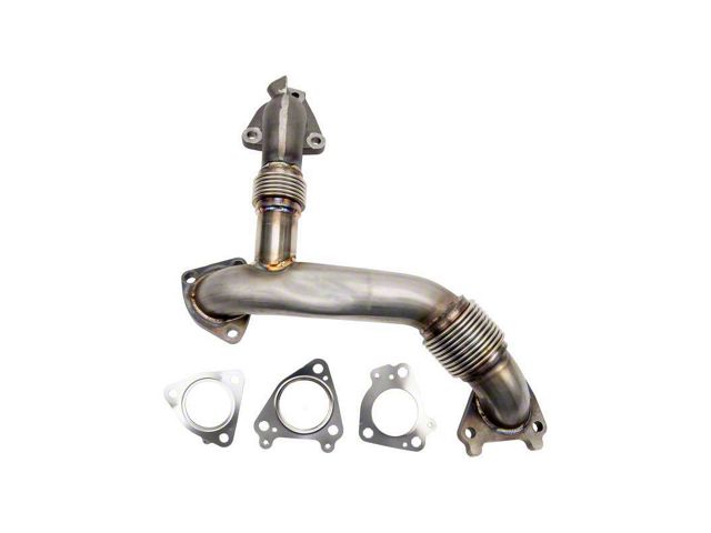 Replace the lightweight 16G, leak prone, 1 5/8" OEM passenger side up pipe on your 2011-2016 6.6L LML Duramax equipped Chevrolet Silverado or GMC Sierra 2500 / 3500 HD truck with these heavy duty 11 gauge 2" Stainless up pipe kit. HD Stainless Bellows that will not crack and leak like OEM. Improves exhaust flow which increases turbo spool-up and decreases EGT's. Excellent upgrade for hard working, heavy towing trucks or high performance applications equipped with larger upgraded turbocharger and emissions compliant tuning. Compatible with OEM style exhaust manifolds or WCFab Billet Exhaust Manifold (Part Number WCF100363). INCLUDES GASKETS! - NO Tuning required, bolt on! -Will fit on stock truck no other modifications or upgrades necessary! Replaces the following GM part numbers: 12657012, 12638302, 12644640. Will not work with aftermarket manifolds which alter the exhaust outlet location. Not compatible with LGH Duramax Equipped Express or Savana models.