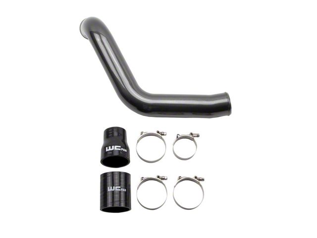 The 3" High Flow Passenger Side Intercooler Pipe for 2004.5-2005 LLY Duramax replaces the 2.5" one piece pipe using an angled boot with a high flow, mandrel bent, 14 ga. aluminum one piece 3" pipe. This part uses upgraded silicone boots in order to withstand higher boost pressures than the factory components to increase reliability and eliminate blown factory boots and horsepower robbing boost leaks. Boot connection is straight at the intercooler unlike the angled factory boot connection. Finished in your choice of custom powder colors. This pipe is compatible with stock trucks requiring no additional modifications, upgrades, or tuning for installation. Improves airflow between the turbo and engine for improved efficiency, throttle response, and turbo spool up. Eliminates weak points in the factory design that can lead to boost leaks or complete failures in hard working and high performance applications. Installs easily with basic hand tools. Pairs best with emissions compliant tuning and drop in turbochargers for optimum performance gains.