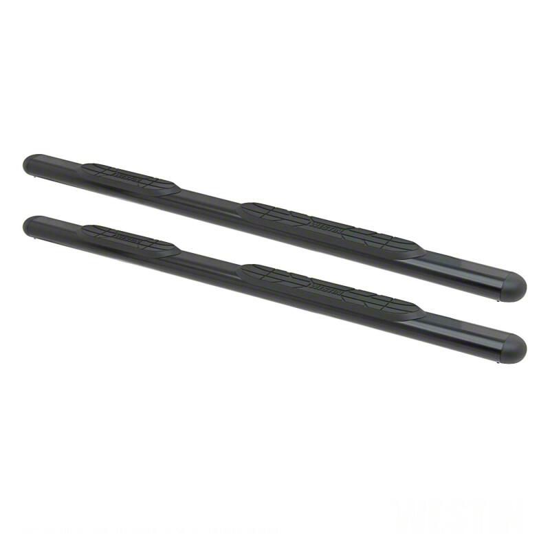 Saddle mounted step pad. Molded oval end caps. Features cradle mounted tubes and no drill installation. Black powder coated mild steel finish. 3 year warranty.