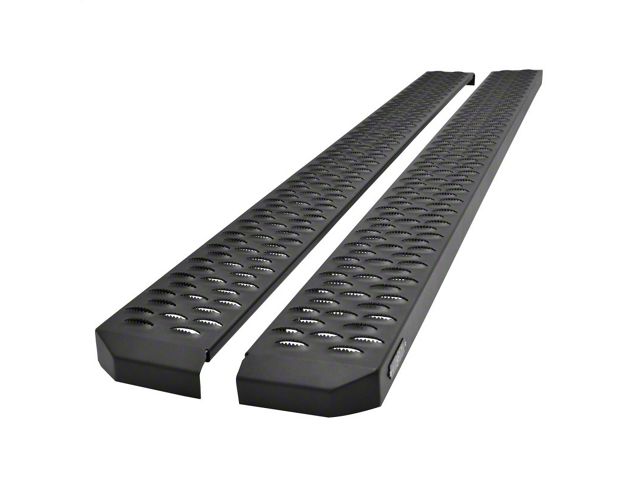 Westins Grate Steps Running Boards are engineered to provide maximum traction without sacrificing style. The 6 1/4 in. step surface width features an aggressive 1/4 in. high punched tread allowing traction in any weather condition. The unique serrated edges help clean dirt, snow and mud off your boots to keep truck cab clean. Grate Steps Running Boards feature stylishly formed and fully welded ends with a custom die-cast riveted logo badge. E-coated base coat provides long lasting corrosion protection which far surpasses that of the competition. Solid 1-piece construction makes the Grate Steps Running Boards ideal for construction, commercial, vans and utility use. Available in universal lengths (54 in., 68 in., 75 in., 79 in., 83 in., 86 in. and 90 in.) with vehicle specific mount kit required, sold separately. Available in textured black finish.