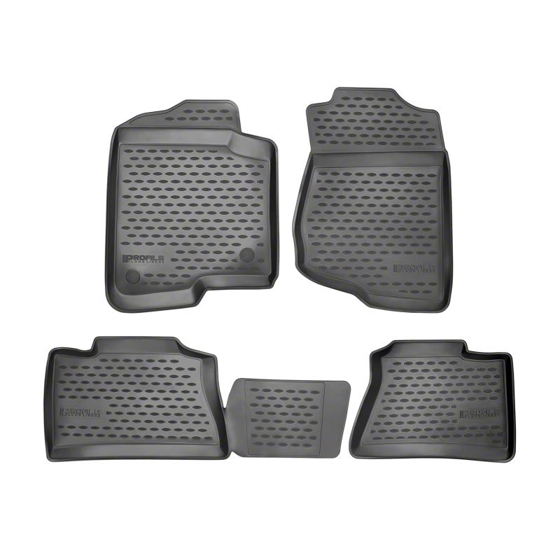 Westin Profile Floor Liners for vehicle front row protect the driver and passenger side floor areas from daily wear and tear. Their flexible durable and odorless rubber material maintains its shape in heat cold or from heavy loads. They feature a raised textured surface that provides great traction and can be easily cleaned with soap and water. Front row liners are designed to accommodate vehicles equipped with retainer hooks where applicable. Great for all seasons!