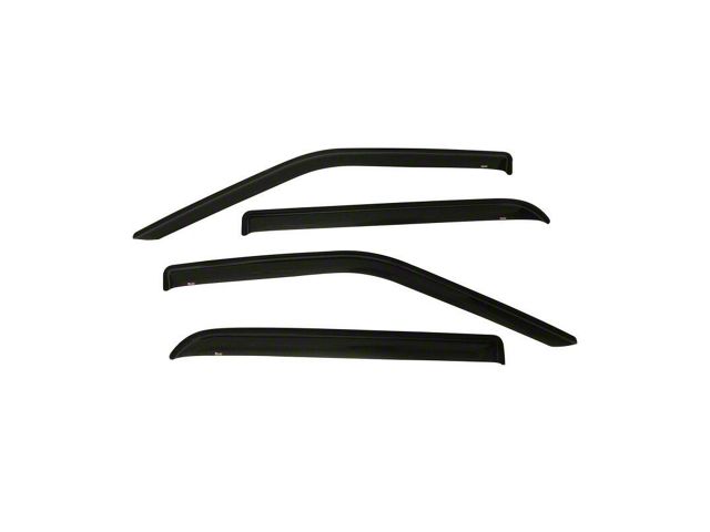 Tape On Wind Deflectors are a quick and quality solution to reducing wind, noise, heat, and glare without compromising the entry of fresh air when windows are rolled down slightly. They attach easily into position with 3M automotive grade tape on to the vehicle's outer window frame. Wind deflectors promote the circulation of fresh air while minimizing its volume and strength as it re-directs it up and into, or out of the vehicle. Their sleek design deflects wind and noise from entering the vehicle for a more pleasant ride any time of year. They are made from high-gloss smoke acrylic, and have transparency, so, visibility is never obstructed.