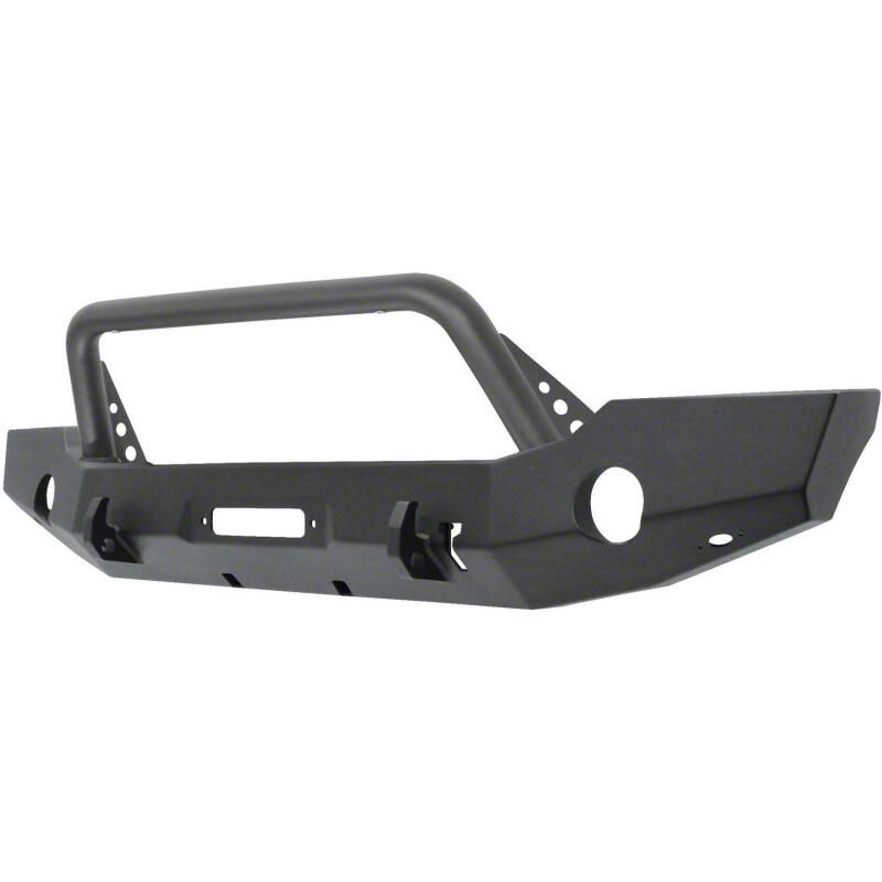 Westins WJ2 Full Width Front Bumper with Bull Bar is constructed with 3/16-inch plate steel and fits most double or single row 20 light bars. The Bull Bar on our new WJ2 Stubby Bumper is designed to mount and protect your light bar. The product is designed to utilize both styles of factory fog lights or round post lights. With Westins new WJ2 Full Width Bumper, your winch fits inside the bumper to allow maximum air flow to your vehicles radiator and is designed to allow winch installation with your bumper already installed -- most other brands wont! Features Rock Light mount points on lower bumper corners, holes to hide light harness wires, and 2 front off-road jack points. Product offers recovery hooks with a recovery shackle mount point to allow easy tow strap attachment. Includes bumper, mounting hardware and install instructions.
