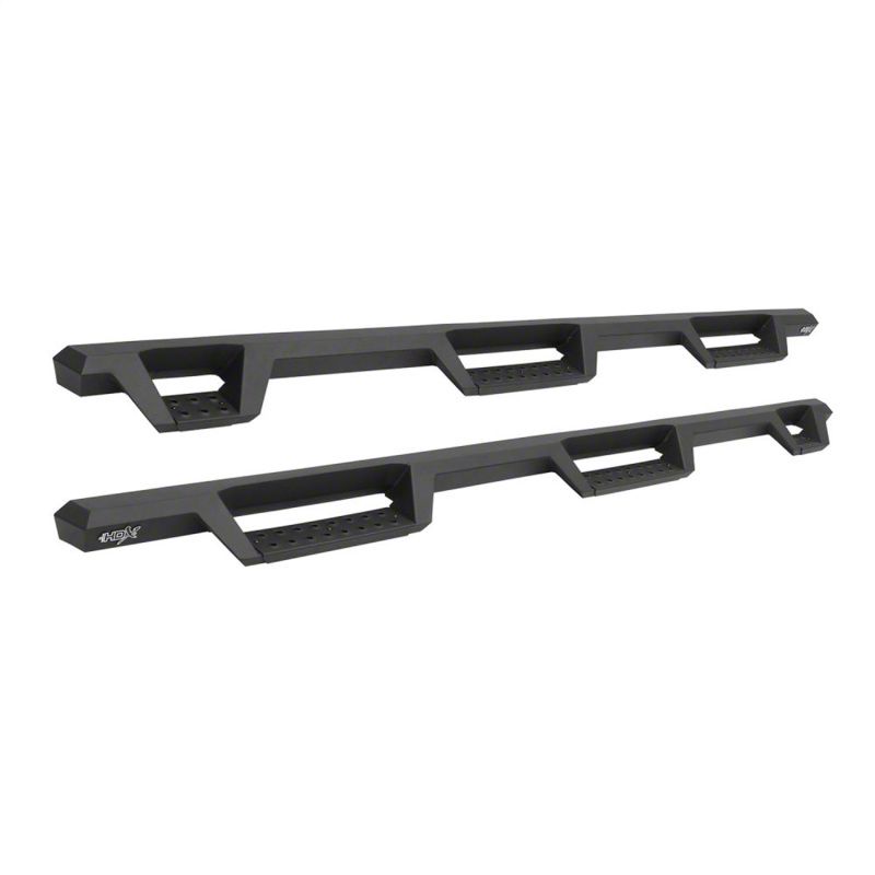 Westins HDX Drop Wheel-to-Wheel Nerf Step Bars feature a notched bar design with a 3rd step location for easy bed access. They provide strong traction with over 2 inches more of toe/heel step area than our Westin's HDX Drop W2W Nerf Step Bars include an added 3rd step location for easier bed area and cargo access. HDX also boasts more than 2 inches of added toe/heel step area which far exceeds all other competitive brands. HDX's notched bar design construction results in a reliable long lasting Bar, with a solid fit and a rugged look. The added length of HDX Drop Wheel-to-wheel Nerf Step Bars provides users with better cab access and better footing and traction for both drivers and passengers. Product includes mount kit and is offered in a variety of vehicle specific applications. Bolt-on installation so no drilling required. Mount kit included. Westin's exclusive Isolator Bracket supports the step bar past the truck cab, a feature that competitors do not offer. Without an Isolator Bracket, the step area that extends past the vehicle is left unsupported. Our unique design provides extra bed support without resulting in annoying creaking sounds.
