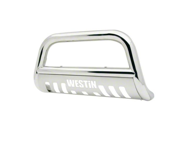 Westin E-Series Bull Bars are a front-end light bar designed for trucks and larger model SUVs. It is made of 3 diameter polished stainless steel tube. It mounts utilizing existing vehicle mounting points and installation does not require any drilling to the vehicle frame. Comes complete with mounting kit the Westin E-Series Bull Bar provides a mounting point for 2 auxiliary lights up to 6 in diameter. It features a die-cut Westin block logo design on the stainless steel skid plate unique to the Westin E-Series Bull Bar.