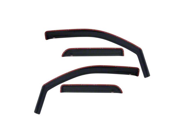 Wade In-Channel Wind Deflectors are a quick and quality solution to reducing wind, noise, heat, and glare without compromising the entry of fresh air when windows are rolled down slightly. They are easily installed by inserting the flanged edge into the directly window channel and secured with 3M automotive grade tape. Wade Wind Deflectors promote the circulation of fresh air while minimizing its volume and strength as it re-directs it up and into, or out of the vehicle. Their sleek design deflects wind and noise from entering the vehicle for a more pleasant ride any time of year. They are made from high-gloss smoke acrylic, and have transparency, so, visibility is never obstructed.