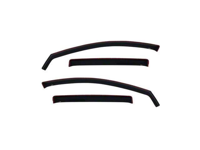 Wade In-Channel Wind Deflectors are a quick and quality solution to reducing wind, noise, heat, and glare without compromising the entry of fresh air when windows are rolled down slightly. They are easily installed by inserting the flanged edge into the directly window channel and secured with 3M automotive grade tape. Wade Wind Deflectors promote the circulation of fresh air while minimizing its volume and strength as it re-directs it up and into, or out of the vehicle. Their sleek design deflects wind and noise from entering the vehicle for a more pleasant ride any time of year. They are made from high-gloss smoke acrylic, and have transparency, so, visibility is never obstructed.