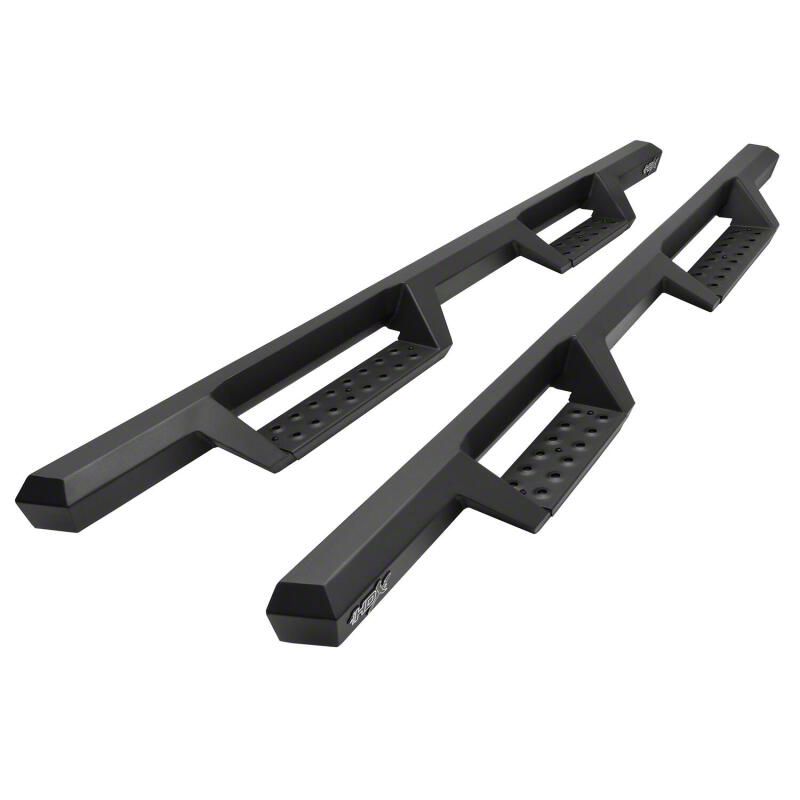 Westins HDX Drop Nerf Step Bars provide the rugged look and function that truck owners need and want. They feature a solid 1-piece steel construction and heavy duty punch plates creating high traction step areas. The HDX Drop Nerf Step Bars also feature Westins notched bar design which provides more than 2 in. of additional toe/heel placement versus competitive brands. Available in a textured black finish that complements Westin HDX Bumpers. The HDX Drop Steps have vehicle specific applications and include a vehicle specific mount kit, installation hardware and instructions.