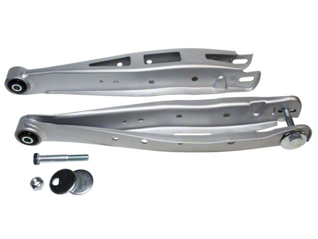 Adjustable lower control arms feature a light weight (1.72kg/3.8lbs per complete arm) stamped steel design. Adjusts via cam bolt and eccentric bushing for in-field adjustment versatility.