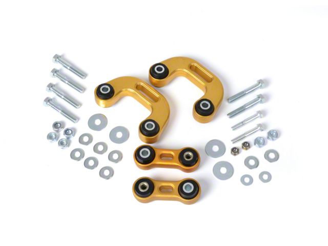 The kit utilises a high tensile extruded alloy link fitted with ultra low compliance synthetic elastomer bushings. Critical hardware is replaced with high tensile components to match the higher loads. The result is much more precise and direct roll control with up to 25% more effective bar rate available at lower wheel deflection points. This does NOT mean an outright increase in your bar rate but rather a quickening of its effect allowing more bar rate earlier. Link shape and bush mounts are designed to allow maximum sway bar articulation to ensure full suspension travel while acting more directly under vertical load. Standard length maintains correct sway bar operation.