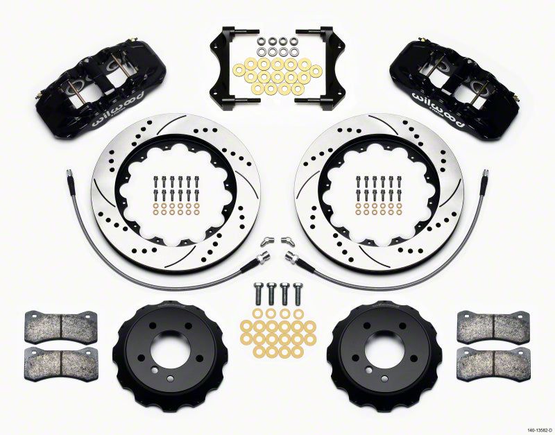 AERO6 calipers were designed for the specific purpose of providing big capacity braking with large diameter rotors for heavy weight and extreme duty vehicles. For cars, it's the biggest of the big providing big brake performance for show and dual purpose street and track vehicles. For trucks and SUV's, it provides big stopping power for towing, off-road, and enhanced braking with wheel and tire upgrades. Kits listed for specific vehicles are fully compatible with OE master cylinder output and ABS function. Directional staggered vane 14.00" to 14.25" rotors provide maximum cooling for sustained high heat durability.