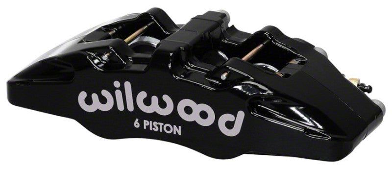 Wilwood's newest DynaPro DP6A Calipers combine pure-bred racing technology with contemporary design to deliver superior braking and high-tech style on a wide range of custom, show, and competition vehicles. This newest model in the DynaPro series features a reinforced triple bridge construction, with five high strength steel bridge bolts, making it the strongest and stiffest DP6 caliper ever built. Offers direct interchange with all 5.25" pattern lug mount DynaPro and Dynalite calipers. With Forged aluminum, six piston differential bore body and stainless steel pistons with high temperature seals. DP6A calipers accommodate rotors up to 13"inch diameter and widths from .38" to 1.10". DP6A calipers are available in gloss black or red powder coat, or Wilwood's Quick-Silver nickel base plating.
