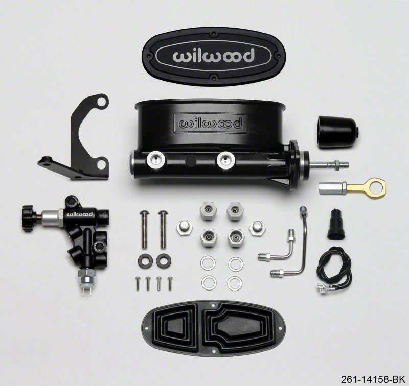 Wilwood has packaged the popular Aluminum Tandem Chamber Master Cylinder with the Combination Proportioning Valve, mounting bracket, fluid tubes and mounting hardware in a kit. Wilwood's Tandem Master Cylinder represents the latest in refinements in brake pressure actuation and fluid control. The slotted flange mounting and included rod assembly makes it a simple bolt on for Early Ford Mustang and fully is compatible with manual system applications. Mustang Tandem Master cylinders are available in two bores sizes, 7/8" or 15/16", and three finishes, standard, ball burnished or black E-coat. The combination proportioning valve substantially simplifies wiring and brake proportioning adjustments on vehicles with custom brake systems. The combination block maintains full isolation between front and rear fluid circuits and is specifically designed to accompany the Tandem Chamber Master Cylinder. The combo valve and bracket are black E-coated for a performance look and long lasting durability. Stainless steel fluid tubes are precision bent with preinstalled plated steel tube nuts for a simple bolt-on installation between the Combination Proportioning Valve and the Wilwood Tandem Master Cylinder. Stainless steel button head fasteners thread into the bracket for a simple installation and years of durable, rust-free performance. Simply connect the fluid lines, bleed the system, and you're finished.