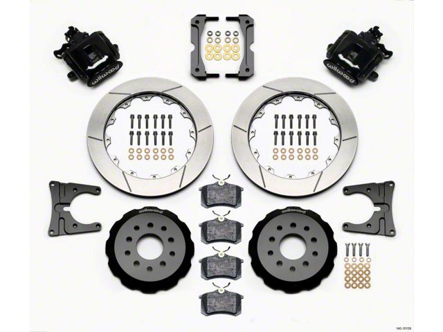 Combination hydro-mechanical Parking Brake calipers use hydraulic pressure from the master cylinder for stopping power, and an internal mechanical lock within the caliper for a parking brake. CPB kits are built primarily for front wheel drive vehicles, and select rear wheel drive axles that are not well suited for internal shoe style parking brakes. The calipers are coupled with oversized two-piece rotor assemblies with aluminum hats and high friction BP-10 compound pads. CPB kits provide the correct balanced brake performance and matching style to compliment front big brake upgrade kits.