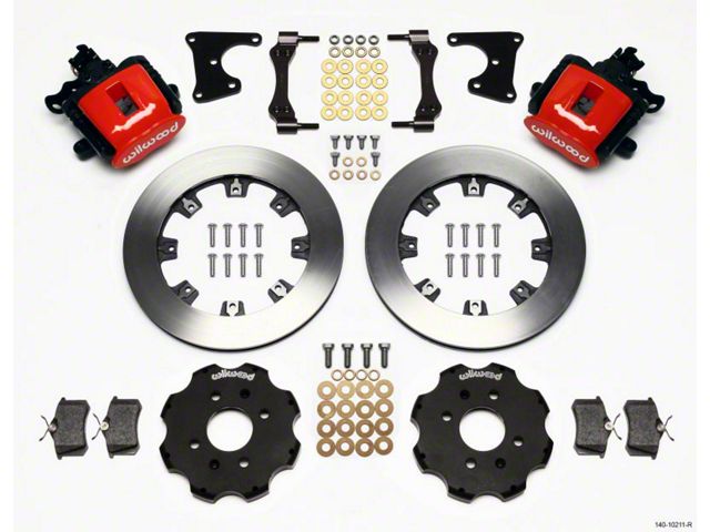 Combination hydro-mechanical Parking Brake calipers use hydraulic pressure from the master cylinder for stopping power, and an internal mechanical lock within the caliper for a parking brake. CPB kits are built primarily for front wheel drive vehicles, and select rear wheel drive axles that are not well suited for internal shoe style parking brakes. The calipers are coupled with oversized two-piece rotor assemblies with aluminum hats and high friction BP-10 compound pads. CPB kits provide the correct balanced brake performance and matching style to compliment front big brake upgrade kits.