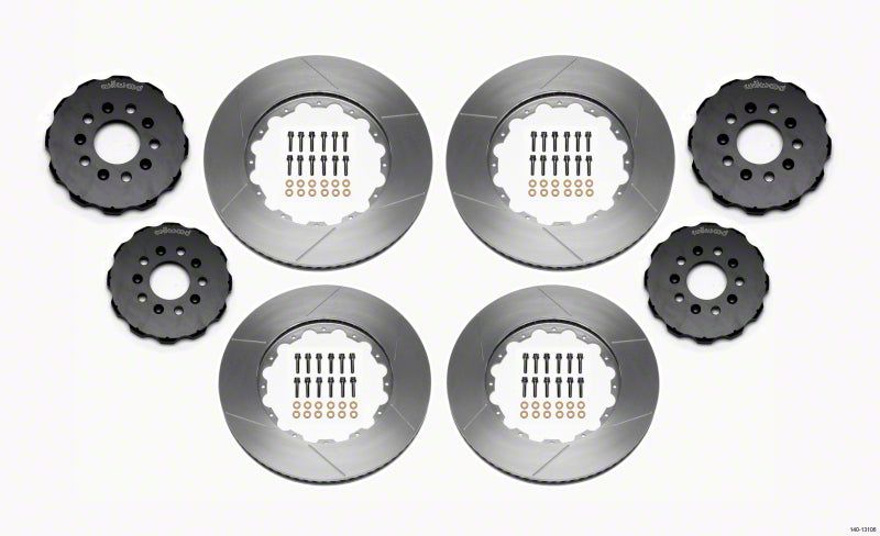 ProMatrix Front and Rear Rotor Kits offer measurable brake performance improvements to racers and enthusiasts using the OE factory brake calipers. Two piece aluminum hat and GT 72 & 32 Curved Vane Spec-37 assemblies are used to provide high temperature durability for the track and high-tech style for the street. Spec-37 rotors are manufactured from a proprietary iron alloy developed to withstand extreme temperatures with the highest possible degree of resistance against distortion, warping, cracking, and wear. The formulation for this alloy is a derivative of technology and materials that were significant in the development of the extreme duty military spec rotors that are manufactured by Wilwood.