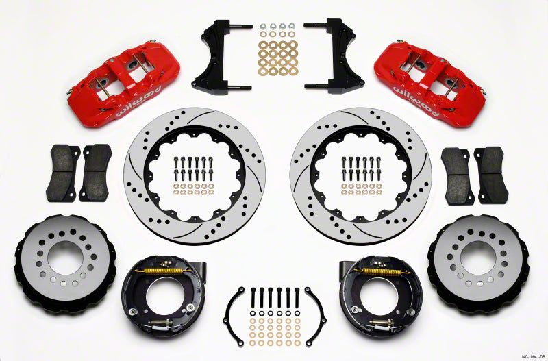 AERO4 Rear Parking Brake kits provide the ultimate Big Brake solution for popular muscle car rear axles that require a parking brake. Forged AERO4 four piston calipers, 14" two-piece rotors, and high performance BP-10 compound pads provide optimized and balanced braking to compliment front big brake upgrades on all types of custom, show and high performance street machines. The neatly hidden internal shoe system provides a clean installation with superior static holding power for parking. Optional caliper finishes and rotor designs allow builders to personalize the style and performance for every application.