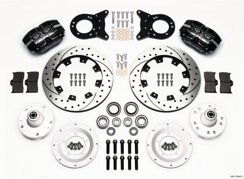 DP-DB Big Brake Front Hub Kits provide the added advantage of larger diameter brake rotors for traditional non-ABS spindles on American muscle cars and vintage rods. Forged billet Dynapro Dust Boot calipers, 12.19" diameter rotors, and high performance Wilwood brake pads generate big brake stopping power. These kits were developed for applications or locations that require or prefer a dust-booted piston. Dust-booted aluminum pistons provide added protection against road or track born dirt and debris on low to intermediate temperature range applications that may also operate in harsh environments. A full range of options for caliper finish and rotor design provide custom builders with the ability to personalize the style and performance requirements of the mildest to the wildest machines.