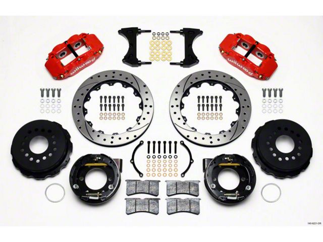 Forged Narrow Superlite 4R rear disc kits provide the ultimate Big Brake solution for popular muscle car rear axles that require a parking brake. FNSL4R four piston calipers, 13" or 14" two-piece rotors, and high performance BP-10 compound pads provide optimized and balanced braking to compliment front big brake upgrades on all types of custom, show and high performance street machines. The neatly hidden internal shoe system provides a clean installation with superior static holding power for parking. Optional caliper finishes and rotor designs allow builders to personalize the style and performance for every application.