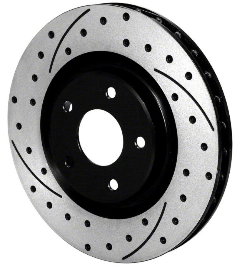 For custom, show and high performance sport driving, SRP Dimpled rotors offer the high tech look and improved performance of a directional cross-drill and face slot pattern. In addition to the aesthetic appeal, the venting and cleaning action of the dimple and slot pattern helps to reduce pad glaze and minimize irregular pad build-up on the rotor faces. The results are a smoother engagement feel at the pedal and consistent response from the pads. Each rotor is precision machined to less than .001 tolerance for overall flatness, parallelism, and radial run-out on long grain carbon iron castings. The rotors are finished with a black electro coat to provide corrosion resistance.