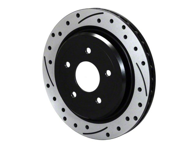 For custom, show and high performance sport driving, SRP Dimpled rotors offer the high tech look and improved performance of a directional cross-drill and face slot pattern. In addition to the aesthetic appeal, the venting and cleaning action of the dimple and slot pattern helps to reduce pad glaze and minimize irregular pad build-up on the rotor faces. The results are a smoother engagement feel at the pedal and consistent response from the pads. Each rotor is precision machined to less than .001 tolerance for overall flatness, parallelism, and radial run-out on long grain carbon iron castings. The rotors are finished with a black electro coat to provide corrosion resistance.