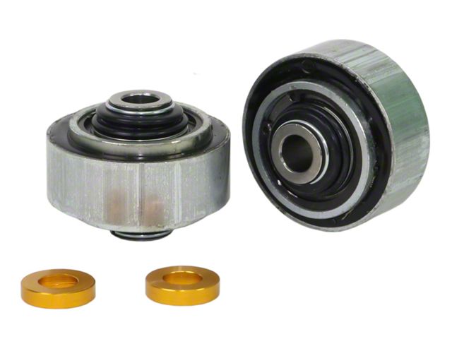 Hard acceleration and braking allow the lower control arms to move around significantly causing axle tramp, poor launch and power delivery. Due to the dynamic nature of these lower control arm bushings this also alters the bump steer characteristics effectively generating significant 'toe in' under hard braking. When replacing the rear caster bushing with a low compliance bushing this alters the dynamic effect within the bump steer so Whiteline has cleverly packaged these items together to give you additional camber during turn in which is achieved through the offset in the low compliance bushing, improved anti dive geometry and neutralised bump steer correction. This kit tightens up the front suspension and makes it more nimble and responsive during acceleration, braking and cornering.